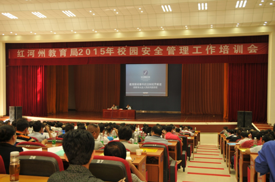 2015年8月13日,紅河州教育局為進(jìn)一步推進(jìn)全州中小學(xué)安全教育工作,提高廣大干部職工的政策法規(guī)水平和學(xué)校安全管理能力,結(jié)合全州中小學(xué)安全管理現(xiàn)狀及《云南省教育廳 云南省財(cái)政廳 中國(guó)保險(xiǎn)監(jiān)督管理委員會(huì)云南監(jiān)管局關(guān)于進(jìn)一步做好校方責(zé)任保險(xiǎn)工作的通知》(云教體〔2013〕8號(hào))的要求,舉辦了校方責(zé)任保險(xiǎn)暨校園安全管理培訓(xùn)。各縣市教育局負(fù)責(zé)校方責(zé)任保險(xiǎn)工作的具體工作人員及各縣市中學(xué)校長(zhǎng)、鄉(xiāng)鎮(zhèn)中心校校長(zhǎng)參加此次培訓(xùn)。